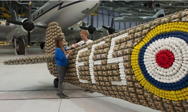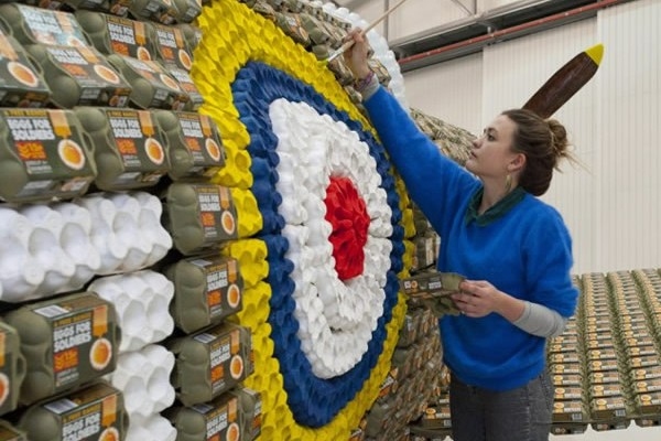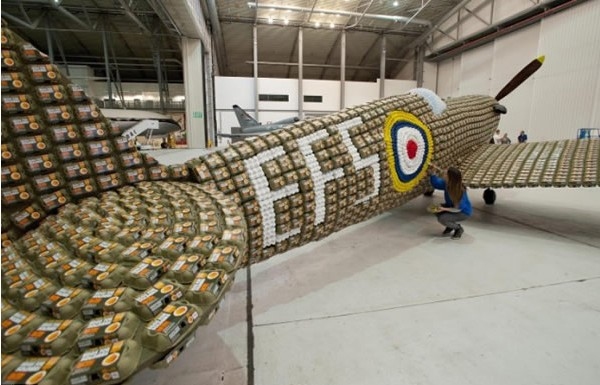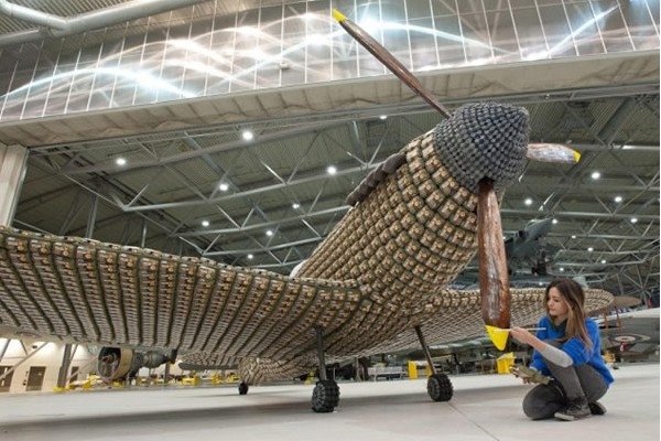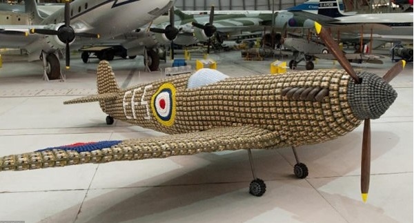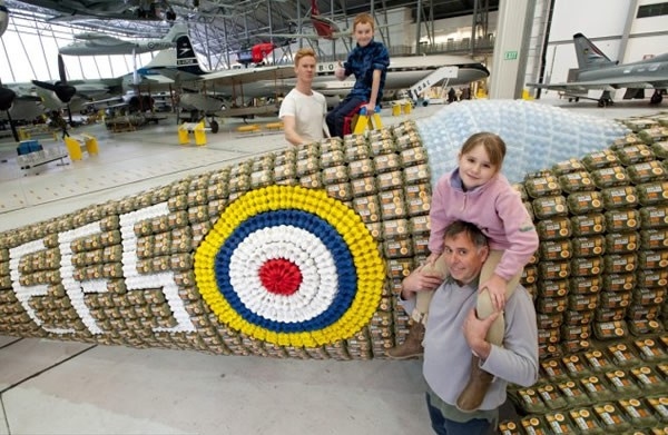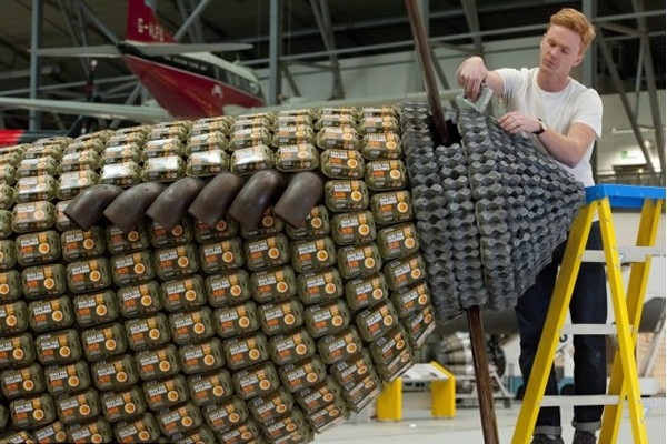 圖:6500個(gè)雞蛋盒打造的噴火式飛機