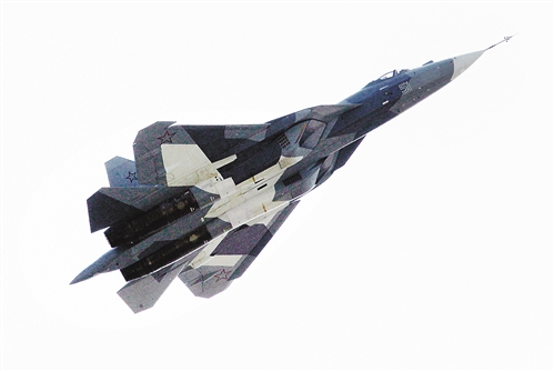 T-50戰機是俄羅斯蘇霍伊公司研制的最新型多功能重型戰機,俄已在該項目上投入600億盧布(約合20億美元),6架原型機已在2010年完成首飛。目前,T-50戰機的主要性能數據還在保密中,與美國的同代戰機F-22和F-35相比,它的優(yōu)勢是隱形能力和機動(dòng)性強。