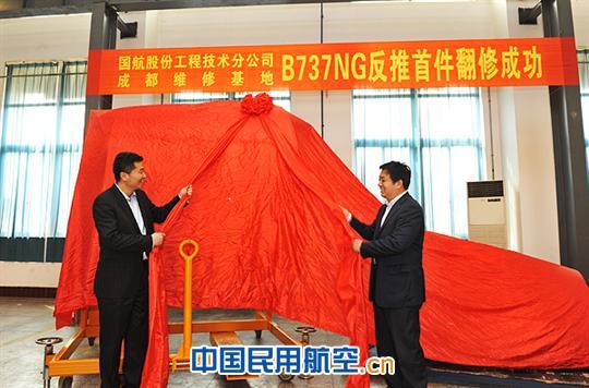 近日, 國航股份工程技術(shù)分公司成都維修基地成功完成了首件B737NG飛機反推部件翻修工作,并于2013年3月8日舉行了該機型反推翻修航材交付儀式。此項目標志著(zhù)該基地在拓展維修能力、打造品牌方面又邁出了堅實(shí)的一步,也為提升國航機務(wù)維修領(lǐng)域核心競爭力增添了厚重的籌碼。