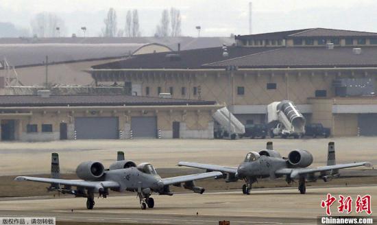 當地時(shí)間4月2日,位于韓國首爾以南的烏山空軍基地內,駐韓美軍戰機頻繁進(jìn)行起降訓練。圖為停放在機場(chǎng)上的美軍A-10攻擊機。