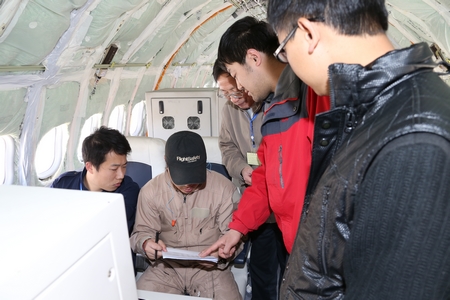 航前,技術(shù)人員對天線(xiàn)進(jìn)行檢查。