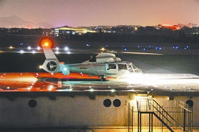 中國某艦載機部隊直升機模擬夜間海上著(zhù)艦