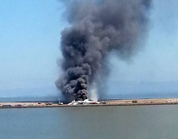 美國聯(lián)邦航空管理局發(fā)言人稱(chēng),失事客機本應在28號跑道左側著(zhù)陸,但不知何故突然在落地后發(fā)生事故,并冒起了濃煙,乘客紛紛通過(guò)充氣滑梯上逃出機外。從現場(chǎng)畫(huà)面看,失事客機尾翼脫落。