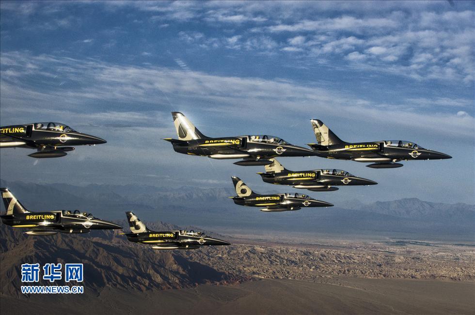 當日7時(shí)許,百年靈8架L-39C表演機從嘉峪關(guān)機場(chǎng)編隊起飛,依次飛越嘉峪關(guān)“關(guān)城”和“懸壁長(cháng)城”,在萬(wàn)里長(cháng)城之尾留下精彩表演。記者登上百年靈的“仙童”SA227-AC雙發(fā)螺旋槳保障機跟隨機隊采訪(fǎng)拍攝,近距離記錄這支著(zhù)名飛行表演隊的飛行瞬間。百年靈噴氣機隊將繼續飛往新疆克拉瑪依,參加2013中國新疆克拉瑪依航空旅游節,以此結束此次亞洲之行的表演。百年靈噴氣機隊是目前世界上最大的民用專(zhuān)業(yè)噴氣機特技飛行表演隊。7架捷克制造的L-39C信天翁雙座噴氣式軍用教練機和飛行員多數來(lái)自法國空軍和“法蘭西巡邏兵”飛行表演隊。每年,百年靈噴氣機隊都會(huì )在世界進(jìn)行50場(chǎng)左右的飛行表演。新華社記者 楊光 攝