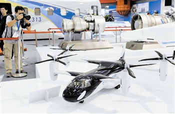 記者看到,“藍鯨”傾轉旋翼概念機外形酷似美國海軍陸戰隊的“魚(yú)鷹”運輸機,其螺旋槳比“魚(yú)鷹”多兩個(gè),達到四個(gè),可以實(shí)現水平向垂直傾轉,是一種最大起飛重量60噸、有效載荷20噸至30噸的“超級巨獸”,性能不遜“魚(yú)鷹”!敖^影”則是一款新概念高速直升機,采用雙旋翼重疊拉力模式,時(shí)速高達500公里至700公里/小時(shí),是一般直升機的三倍以上,能夠進(jìn)行戰場(chǎng)偵察、攻擊、巡線(xiàn)、航拍等多種功能!帮w鴻”概念機外形酷似一架宇宙飛船,有著(zhù)扁平的機身、短而寬的機翼,機身中間隱藏著(zhù)一只巨大的涵道升力風(fēng)扇,具備高速起飛和前進(jìn)能力。
