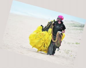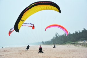 這是一群“斗傘”的人,從他們的如小麥般的膚色不難看出他們對于陽(yáng)光和沙灘的熱愛(ài),他們手中的滑翔傘在海風(fēng)中像撐滿(mǎn)了的帆,似乎稍一放松,它就會(huì )帶著(zhù)操縱者乘著(zhù)風(fēng)向天邊飛去,地上的操縱者則像在與大自然較量,他們把身體重心放到最低,幾乎都要坐在甚至躺在沙灘上。