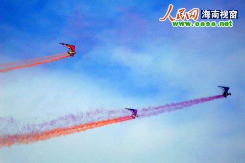21日上午8點(diǎn)左右,經(jīng)過(guò)一天的休整,2011環(huán)海南島飛行拉力賽東方段在東方市邊貿城正式開(kāi)幕。比起前幾日的大風(fēng)天氣,今天的風(fēng)速明顯減弱,在?谖茨芘c廣大市民和游客見(jiàn)面的熱氣球、動(dòng)力傘、動(dòng)力三角翼今天也終于如愿升空,在東方的碧海藍天間盡情的翱翔。大批東方市民趕到現場(chǎng),一幕幕精彩的飛行表演引得現場(chǎng)尖叫連連、掌聲不斷。