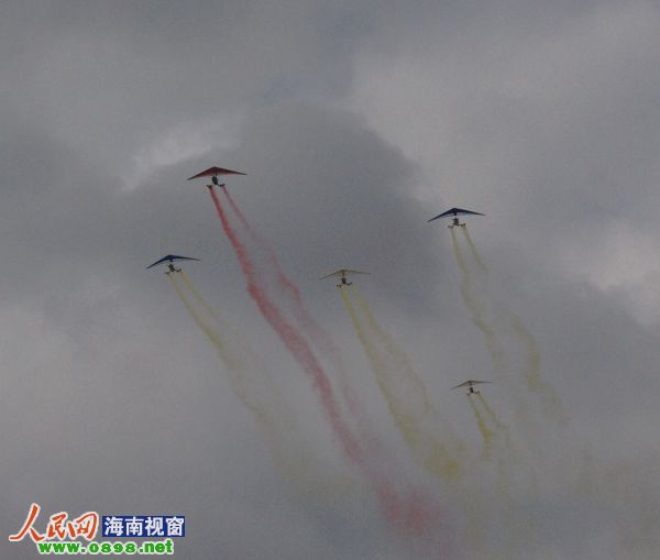 29日的萬(wàn)寧晴空萬(wàn)里,飛行特技運動(dòng)員們早早便做好了準備,熱氣球、動(dòng)力滑翔傘、三角翼、航空模型等飛行器材也準備完畢,早上10點(diǎn),隨著(zhù)歡樂(lè )的音樂(lè )響起,率先飛過(guò)場(chǎng)地的是捧著(zhù)彩帶的三角翼編隊。