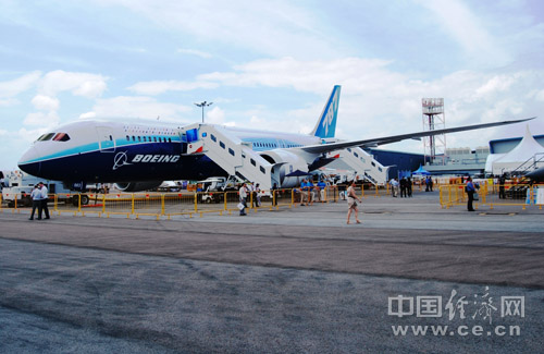 “夢(mèng)幻客機”波音787在航展中亮相。中國經(jīng)濟網(wǎng)陶杰/攝影