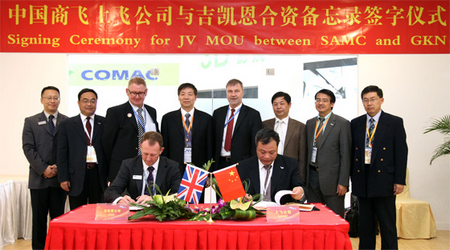 中國經(jīng)濟網(wǎng)訊 2012年11月14日在第九屆珠海航展期間,中國商飛上飛公司與吉凱恩航宇簽署合資備忘錄,中國商飛公司副總經(jīng)理史堅忠、吉凱恩航宇亞太及歐洲首席執行官施喜飛出席了中國商飛上飛公司與吉凱恩航宇的簽約儀式。