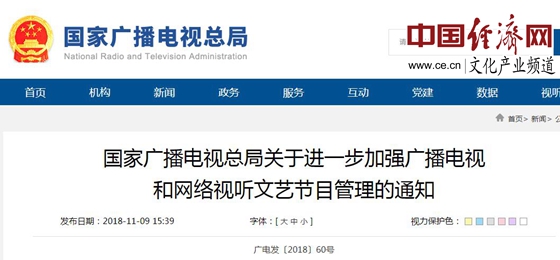 經(jīng)濟日報-中國經(jīng)濟網(wǎng)北京11月20日訊 日前,國家廣播電視總局發(fā)布了《關(guān)于進(jìn)一步加強廣播電視和網(wǎng)絡(luò )視聽(tīng)文藝節目管理的通知》(以下簡(jiǎn)稱(chēng)“通知”)?!锻ㄖ分赋?,一些文藝節目出現了影視明星過(guò)多、追星炒星、泛娛樂(lè )化、高價(jià)片酬、收視率(點(diǎn)擊率)造假等問(wèn)題,不僅推高制作成本、破壞行業(yè)秩序生態(tài),而且誤導青少年盲目追星,滋長(cháng)拜金主義、一夜成名等錯誤價(jià)值觀(guān)念,必須采取有效措施切實(shí)加以糾正。