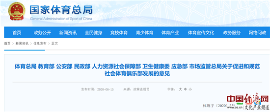 國家體育總局等八部門(mén)聯(lián)合發(fā)文促進(jìn)和規范社會(huì )體育俱樂(lè )部發(fā)展
