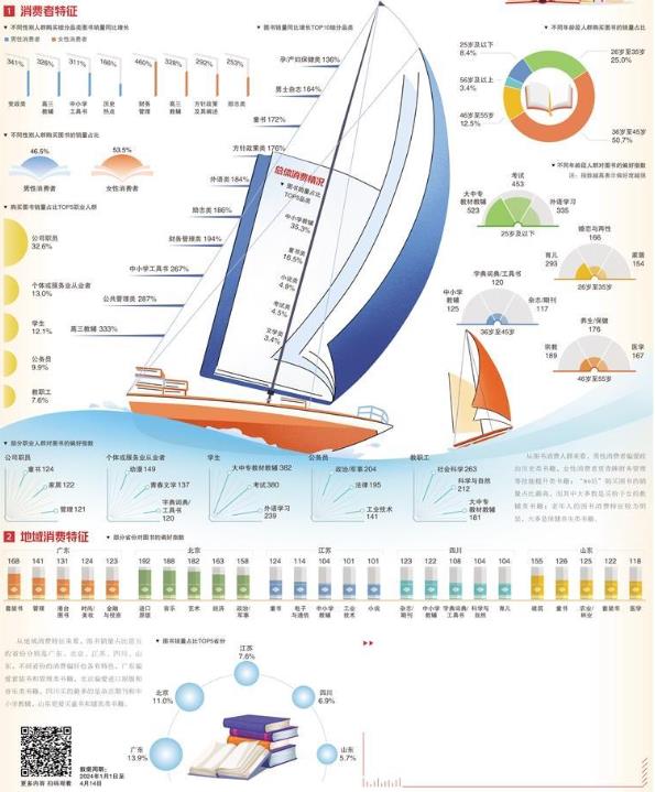 圖書(shū)是人們求知的階梯,也是不少人遇到現實(shí)問(wèn)題時(shí),尋找解決途徑的重要選擇。無(wú)論是學(xué)生、職場(chǎng)人、管理者,還是年輕父母、中老年人,不同的閱讀偏好也體現出生活重心和關(guān)注點(diǎn)的區別。從圖書(shū)消費人群來(lái)看,“80后”人群購買(mǎi)圖書(shū)的銷(xiāo)量占比最高,超過(guò)了50%。從圖書(shū)銷(xiāo)量及增長(cháng)的占比情況來(lái)看,教輔類(lèi)圖書(shū)最受歡迎,增長(cháng)勢頭十分強勁。