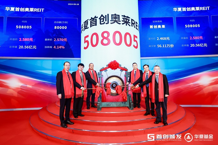 華夏首創(chuàng )奧萊REIT是首創(chuàng )城發(fā)集團、華夏基金、中信證券聯(lián)合推出的消費REITs?;鹗装l(fā)底層資產(chǎn)是首創(chuàng )城發(fā)集團旗下兩個(gè)優(yōu)質(zhì)奧萊項目——濟南首創(chuàng )奧萊項目和武漢首創(chuàng )奧萊項目。兩個(gè)項目經(jīng)營(yíng)業(yè)績(jì)在首創(chuàng )奧萊體系內排名前三,至今已分別運營(yíng)5—6年多,均是當地奧萊標桿?;鹫心颊f(shuō)明書(shū)顯示,華夏首創(chuàng )奧萊REIT 2024年和2025年的預測分派率分別為5.46%、5.84%。華夏首創(chuàng )奧萊REIT在發(fā)售階段頗受投資者歡迎,網(wǎng)下詢(xún)價(jià)認購倍數6倍,公眾發(fā)售認購倍數23倍,均創(chuàng )消費REITs發(fā)售新高,基金比例配售前累計認購資金達70.785億元。華夏首創(chuàng )奧萊REIT的成功上市標志著(zhù)我國消費REITs市場(chǎng)的進(jìn)一步提質(zhì)擴容,也為公募REITs服務(wù)實(shí)體經(jīng)濟、促進(jìn)消費基礎設施高質(zhì)量發(fā)展、賦能城市更新提供了新樣本。