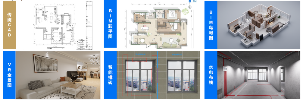 家裝BIM則是用數字技術(shù)把家裝工程“搬”到電腦上,建成3D模型,從生成戶(hù)型、拆改、平面布局、快速換搭、智能鋪貼、生成龍骨、自動(dòng)布線(xiàn)到精準算量,BIM確保裝修信息準確無(wú)誤。相較傳統CAD圖紙,BIM可生成可交互的三維模型,一鍵生彩平圖、鳥(niǎo)瞰圖、白模圖、VR全景圖、渲染圖。目前已覆蓋應用每年10萬(wàn)+的整裝訂單,有效提升設計時(shí)效,降低材料耗損率。