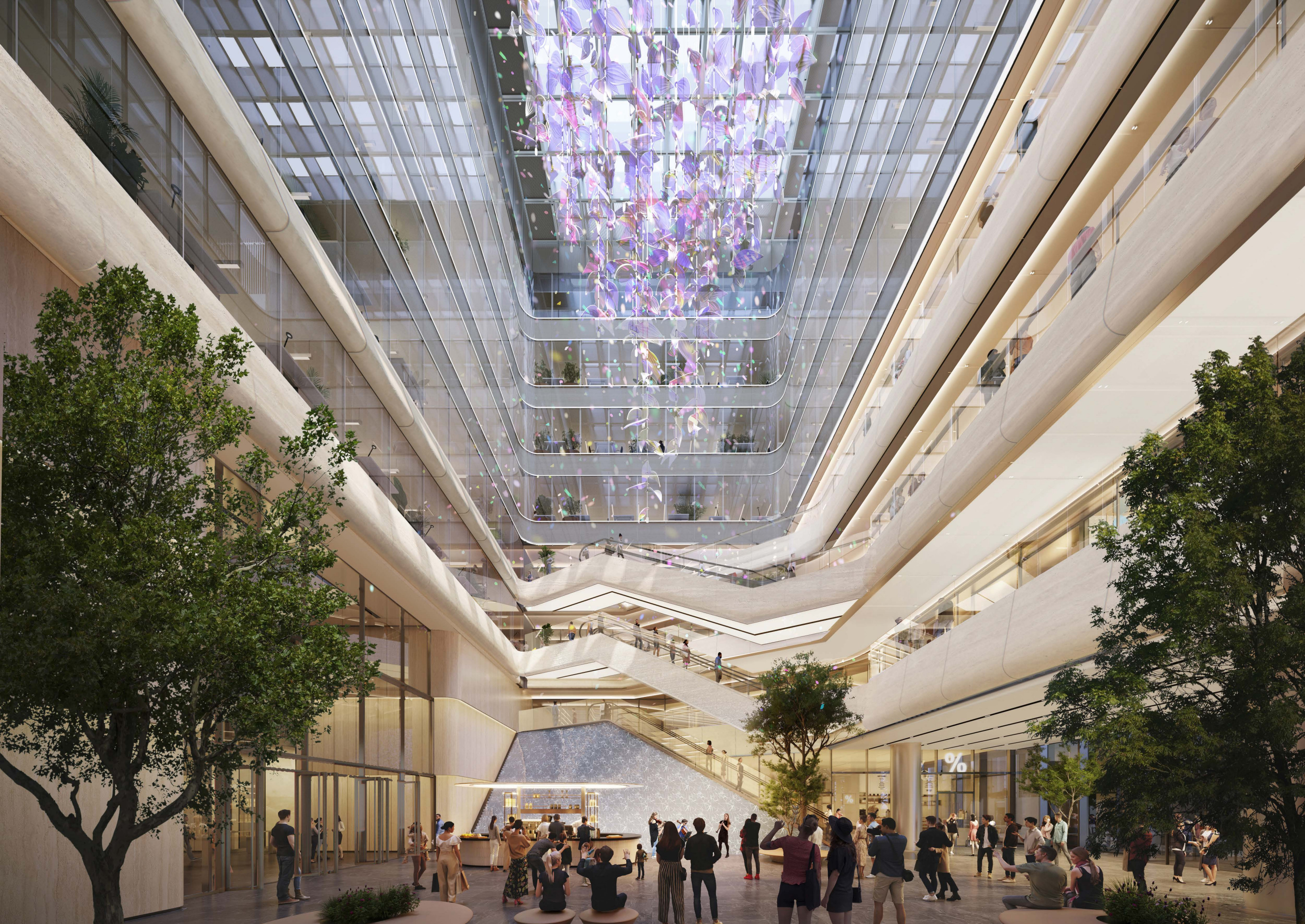 首先,人本與混合辦公,即基于流動(dòng)辦公與多場(chǎng)景并置成為常態(tài)。憑借4300-6900平米超大單層空間與連續樓層內部樓梯設計,創(chuàng )新性地提出“垂直商務(wù)社區”概念,為企業(yè)總部提供前所未有的空間效率與體驗。