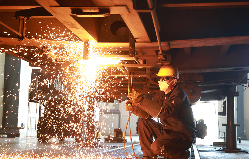 鐵路職工在檢查車(chē)體。 覃澤誠 攝