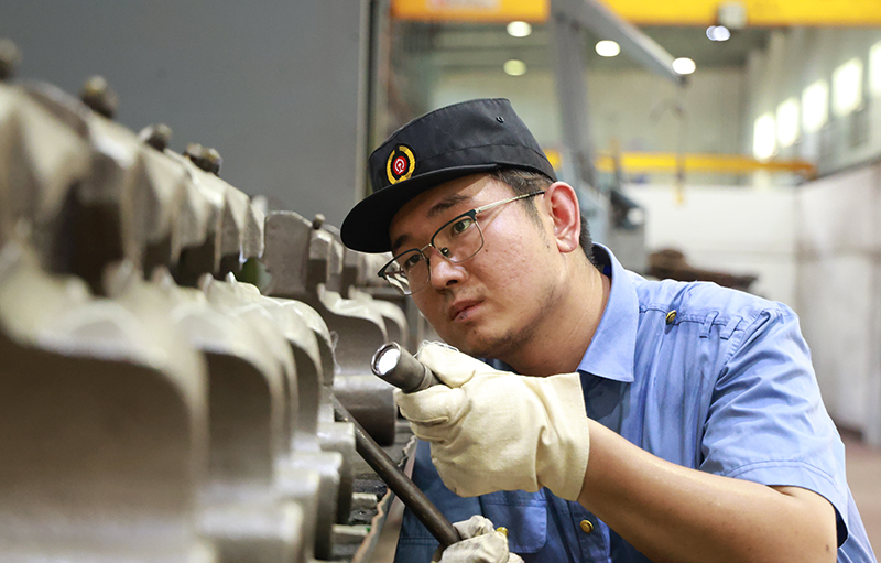 鐵路職工在測量軸承內徑。 覃澤誠 攝