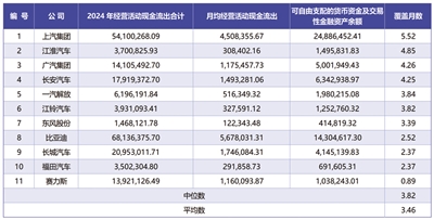 據了解,車(chē)企一般將3至4個(gè)月左右的月均付現成本作為最低現金保有量;若低于2個(gè)月,則被視為資金緊張。