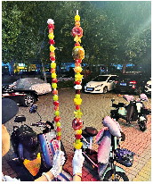 “從50cm到150cm都可訂制,最近開(kāi)始在網(wǎng)上走紅,不少人覺(jué)得拍照好看?!钡曛骼钆拷榻B,每天都是滿(mǎn)單,一周能賣(mài)上百串。從早穿到晚都忙不過(guò)來(lái),需要提前兩天預訂。