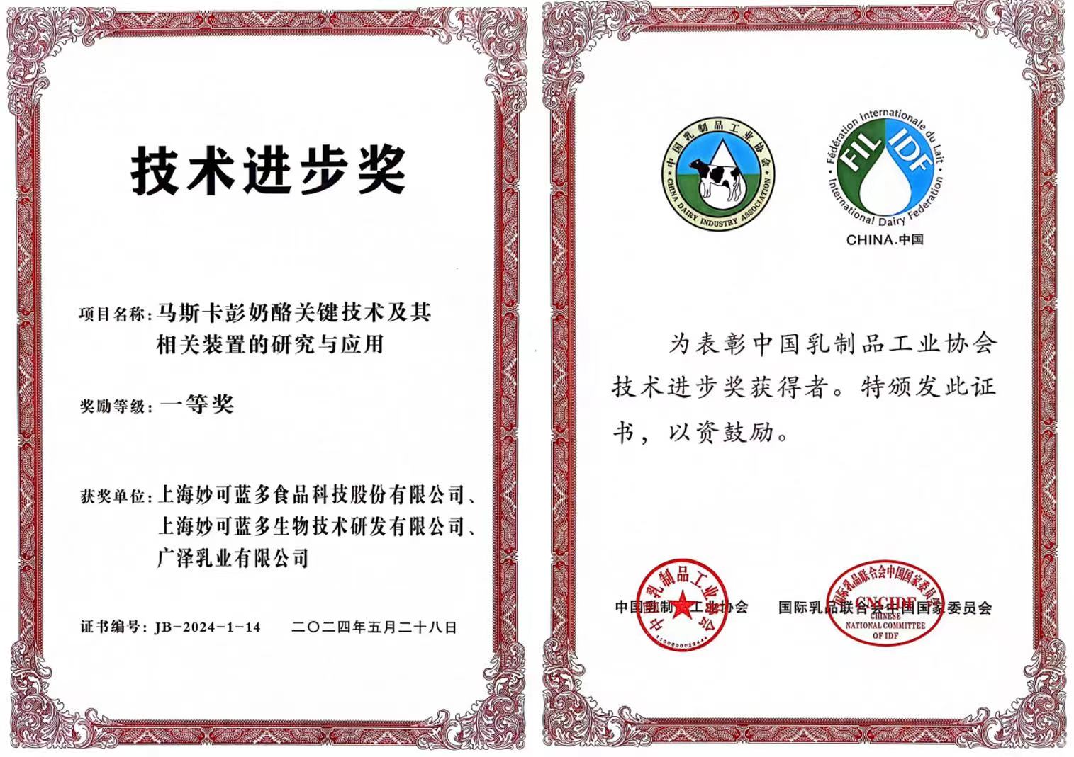 在TO B方面,妙可藍多“馬斯卡彭奶酪關(guān)鍵技術(shù)及其相關(guān)裝置的研究與應用”獲得中國乳制品工業(yè)協(xié)會(huì )和國際乳品聯(lián)合會(huì )中國國家委員會(huì )聯(lián)合頒發(fā)的技術(shù)進(jìn)步一等獎。這既驗證了其在原制奶酪領(lǐng)域研發(fā)與生產(chǎn)的成熟能力,同時(shí)也將加速推動(dòng)妙可藍多在B端產(chǎn)品創(chuàng )新。
