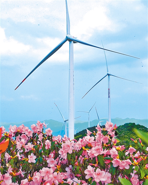 江西省贛州市會(huì )昌縣清溪鄉盤(pán)古嶂風(fēng)力發(fā)電場(chǎng),一臺臺風(fēng)力發(fā)電機矗立在群山之巔。清溪鄉盤(pán)古嶂風(fēng)力發(fā)電場(chǎng)是會(huì )昌縣首個(gè)風(fēng)電項目,共有26臺2000千瓦風(fēng)力發(fā)電機組,總裝機容量5.2萬(wàn)千瓦,采用全球領(lǐng)先的低風(fēng)速發(fā)電技術(shù),年利用小時(shí)數達到2150小時(shí),每年發(fā)電量相當于節約標煤38萬(wàn)噸。