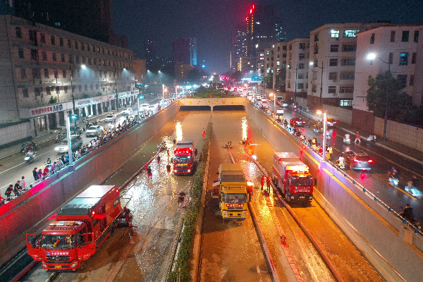 2021年7月,河南發(fā)生特大暴雨,鄭州京廣路隧道被淹。圖為中國安能救援隊伍全力開(kāi)展抽排水任務(wù)。 資料圖片