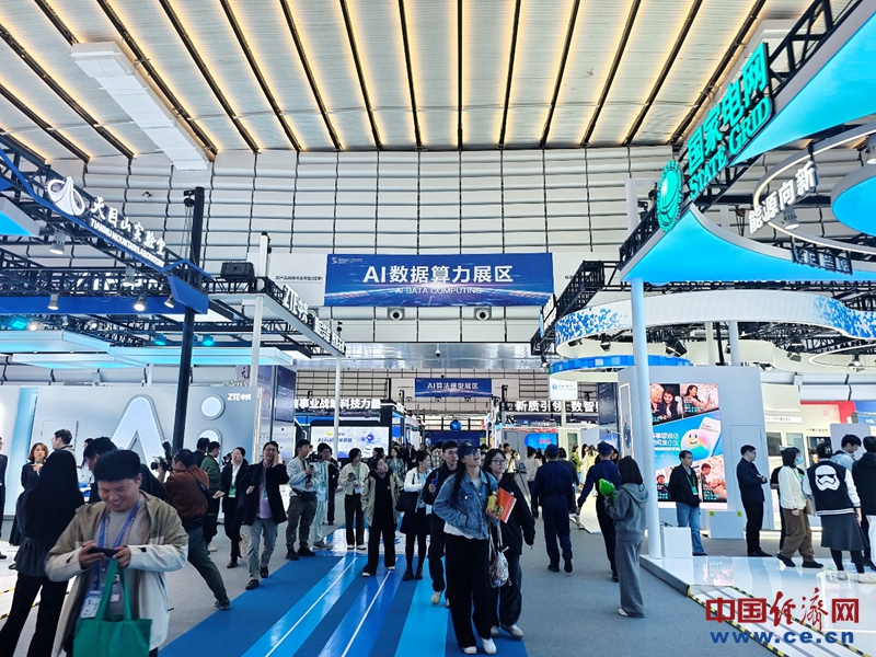 AI數據算力展區游客絡(luò )繹不絕。中國經(jīng)濟網(wǎng)記者李方攝