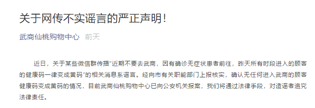 謠言粉碎機二:因無(wú)癥狀感染者前往,湖北仙桃武商購物中心顧客健康碼變黃?謠言!