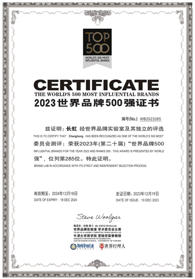 12月19日,世界品牌實(shí)驗室(World Brand Lab)2023年度《世界品牌500強》排行榜揭曉,48個(gè)中國品牌入榜,中國企業(yè)長(cháng)虹排名世界品牌榜第285位,較2022年上升1位。同時(shí),中國國航、長(cháng)虹、海爾智家等35個(gè)領(lǐng)軍品牌入選“2023年中國品牌年度大獎”。