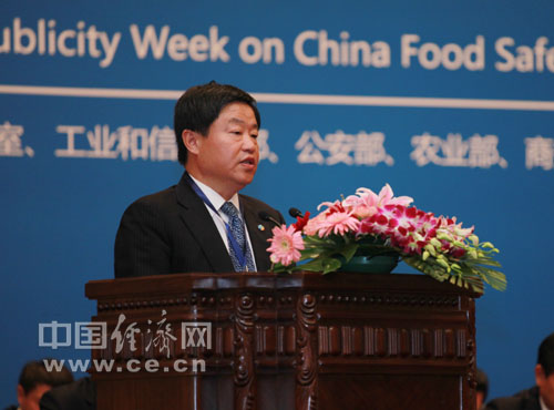 中糧集團董事長(cháng)寧高寧在第三屆中國食品安全論壇上致辭 中國經(jīng)濟網(wǎng)王維亮攝