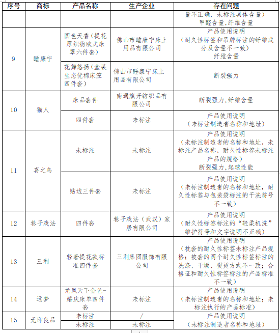 北京市消協(xié)發(fā)布:15個(gè)床上用品品牌樣品不達標