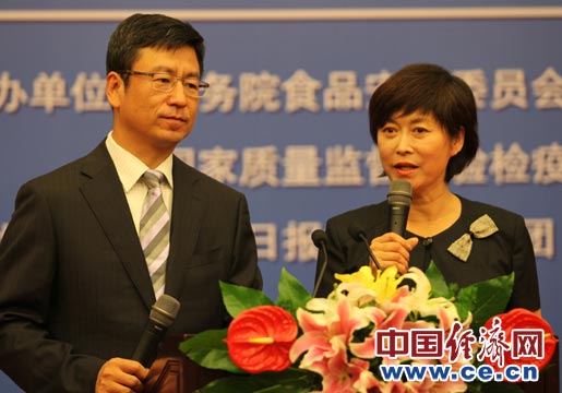6月11日至17日被確定為今年的全國食品安全宣傳周。宣傳周主題為“共建誠信家園 同鑄食品安全”。全國食品安全宣傳周啟動(dòng)儀式由國務(wù)院食品安全委員會(huì )辦公室、工業(yè)和信息化部、農業(yè)部、商務(wù)部、衛生部、國家工商總局、國家質(zhì)檢總局、國家糧食局、國家食品藥品監管局、中國科協(xié)共同主辦,經(jīng)濟日報社、中糧集團承辦,中國經(jīng)濟網(wǎng)執行承辦。圖為食品安全公益形象大使、中央電視臺主持人白巖松和敬一丹主持召開(kāi)第四屆中國食品安全論壇主論壇。