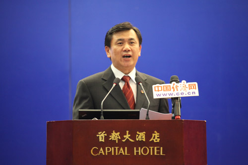 由中國道路交通安全協(xié)會(huì )、中國汽車(chē)技術(shù)研究中心和中國經(jīng)濟網(wǎng)共同主辦的“2013中國道路交通安全論壇”于8月29日在北京首都大酒店舉行。圖為交通運輸部副部長(cháng)馮正霖致辭。中國經(jīng)濟網(wǎng) 裴小閣 攝影