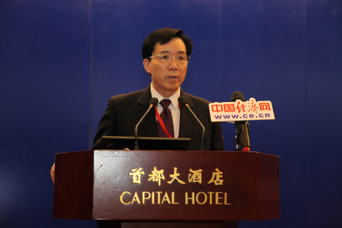 由中國道路交通安全協(xié)會(huì )、中國汽車(chē)技術(shù)研究中心和中國經(jīng)濟網(wǎng)共同主辦的“2013中國道路交通安全論壇”于8月29日在北京首都大酒店舉行。圖為開(kāi)幕式主持人中國道路交通安全協(xié)會(huì )常務(wù)副理事長(cháng)樊漢國。中國經(jīng)濟網(wǎng) 裴小閣 攝影