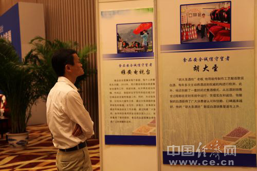 2013年全國食品安全宣傳周啟動(dòng)儀式暨第五屆中國食品安全論壇6月17日在北京舉辦,今年主題為“社會(huì )共治 同心攜手維護食品安全”。圖為大自然保護協(xié)會(huì )中國主席馬云參觀(guān)食品安全“誠信守望者”展覽。中國經(jīng)濟網(wǎng) 王耀峰/攝