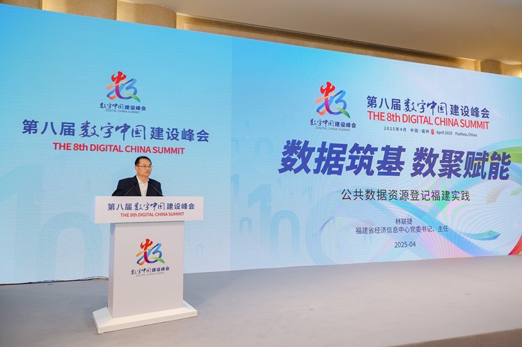 福建省經(jīng)濟信息中心黨委書(shū)記、主任林聯(lián)捷作“數據筑基 數聚賦能——公共數據資源登記福建實(shí)踐”演講。